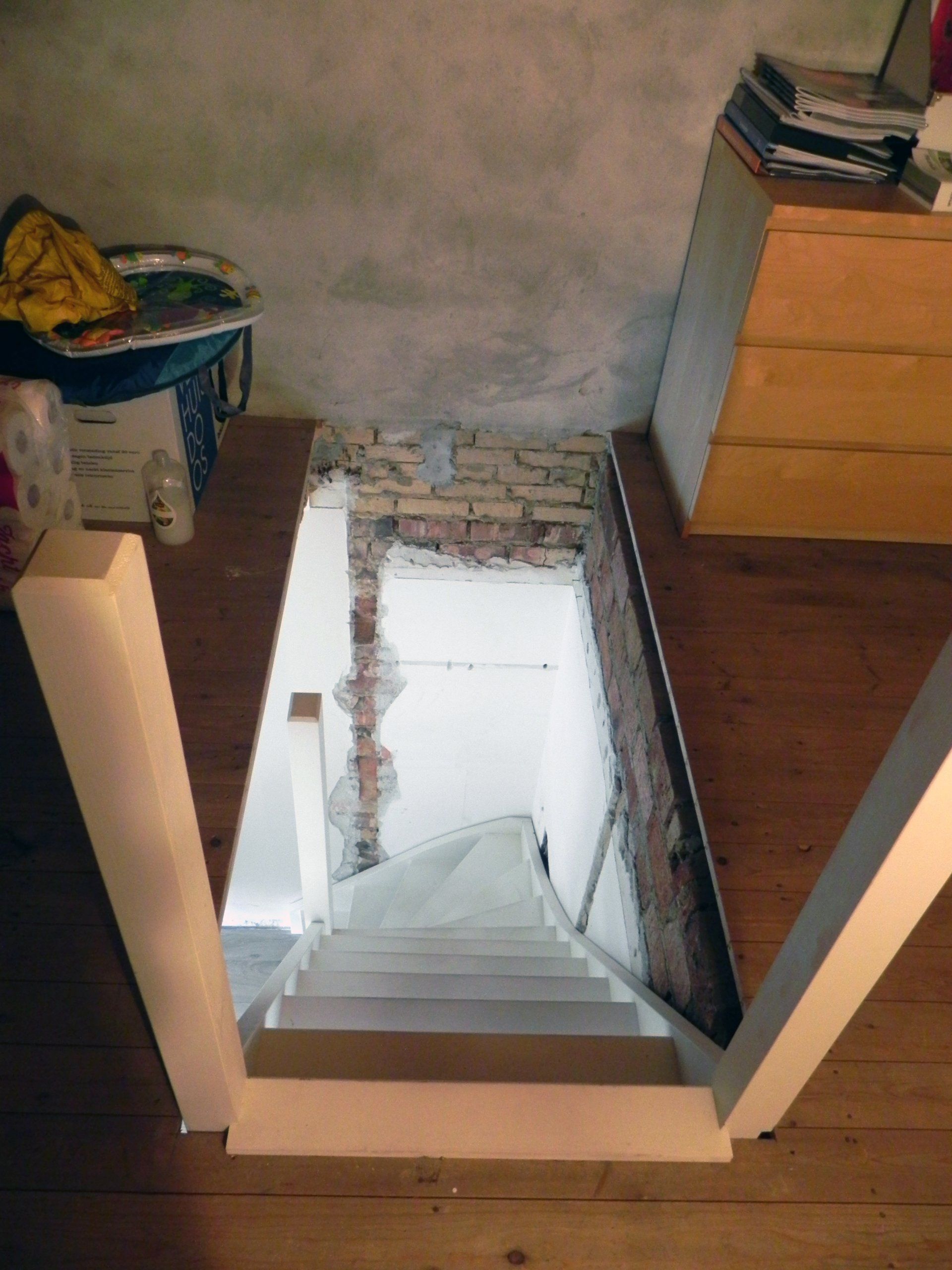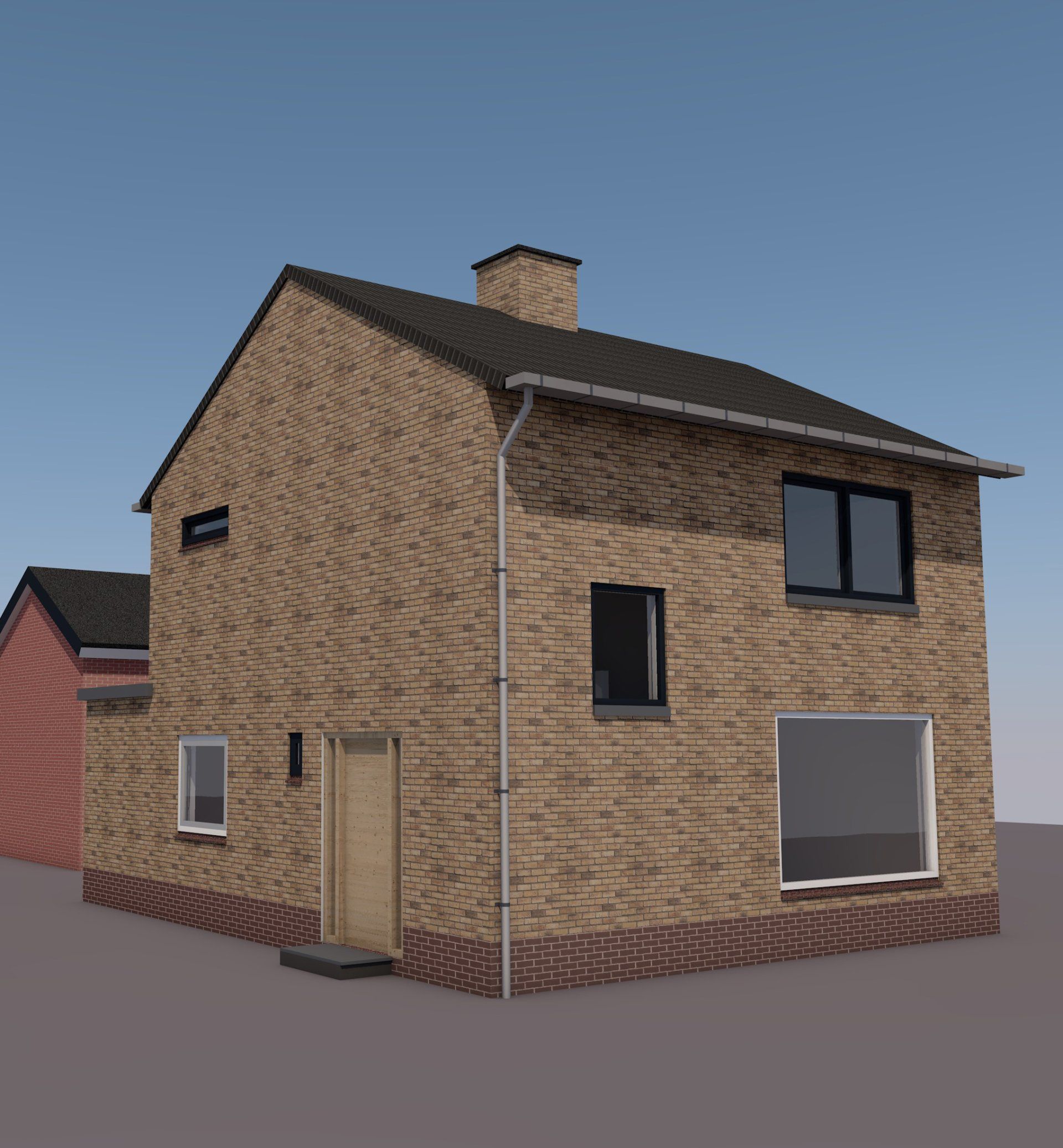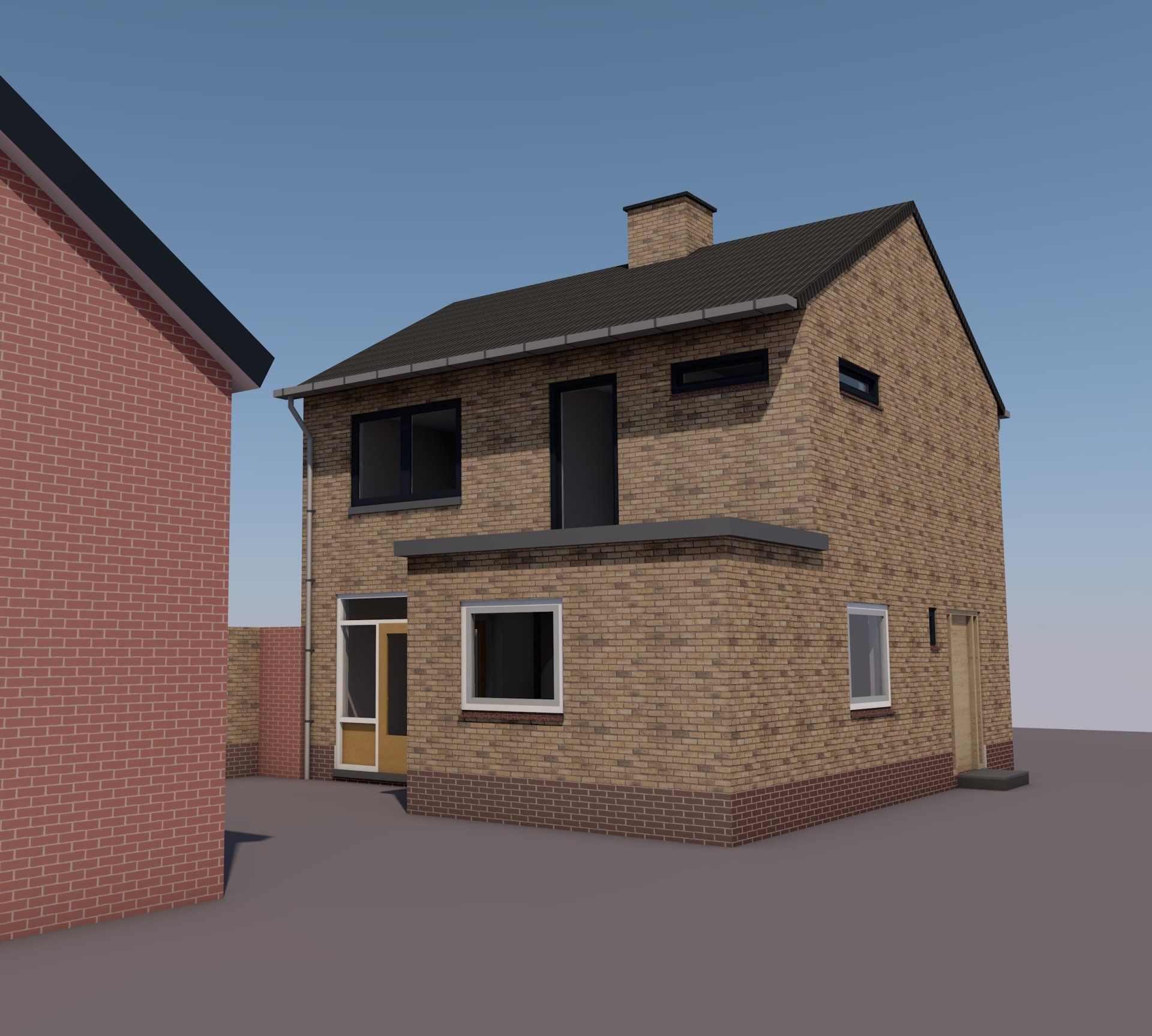 Op de begane grond heeft de bestaande bijkeuken een nieuw, geïsoleerd dak gekregen. Deze ruimte is bij de keuken getrokken en is voorzien van een hoekkozijn om uitzicht op het omringende landschap te bieden. De bestaande wand tussen woonkamer en keuken is opengewerkt om een meer open woonplattegrond te realiseren. De woning is op plaatsen voorzien van nieuwe kozijnen en de hele woning is geverfd zodat een eigentijds exterieur is ontstaan.